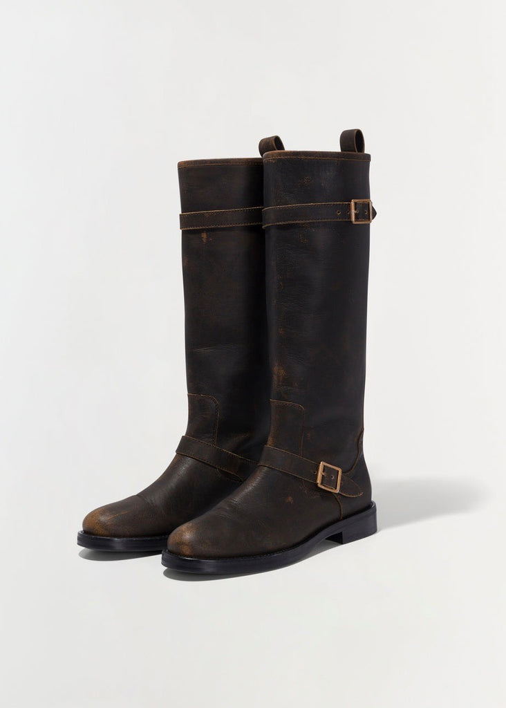 Simkhai's Noah Leather Boots in Distressed Chocolate.