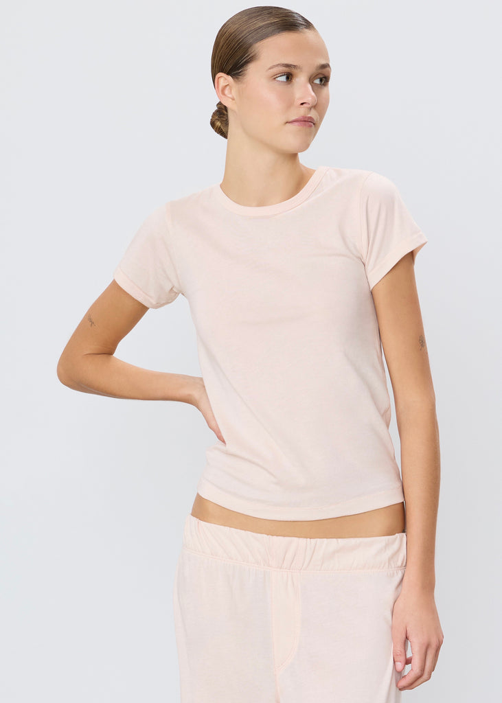 Eterne's Fitted Crewneck Short Sleeve T-Shirt in Dusty Pink.