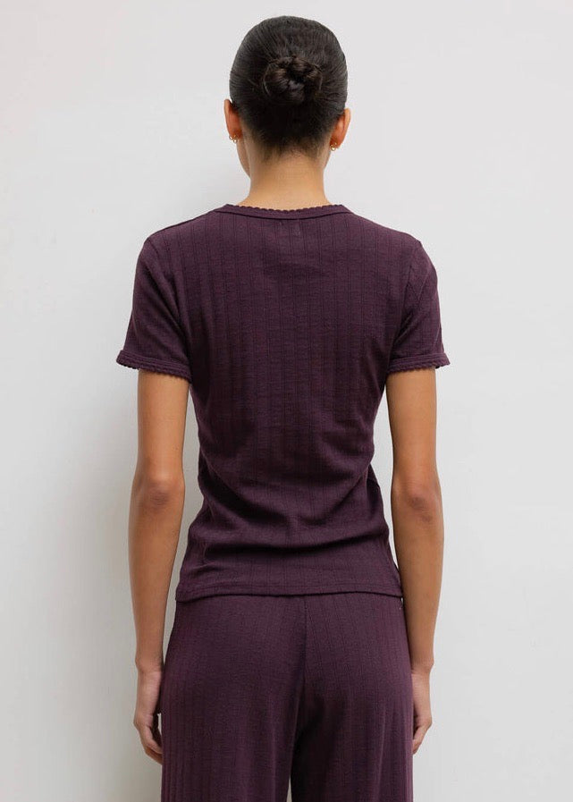 Leset's Pointelle Slim Fit Tee in Dark Berry.