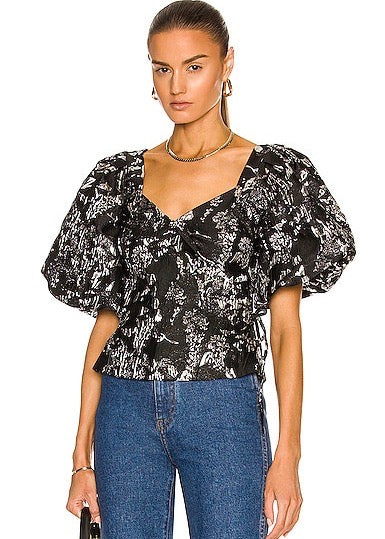 Corina Organza Ruffle Sleeve Top (Periwinkle)