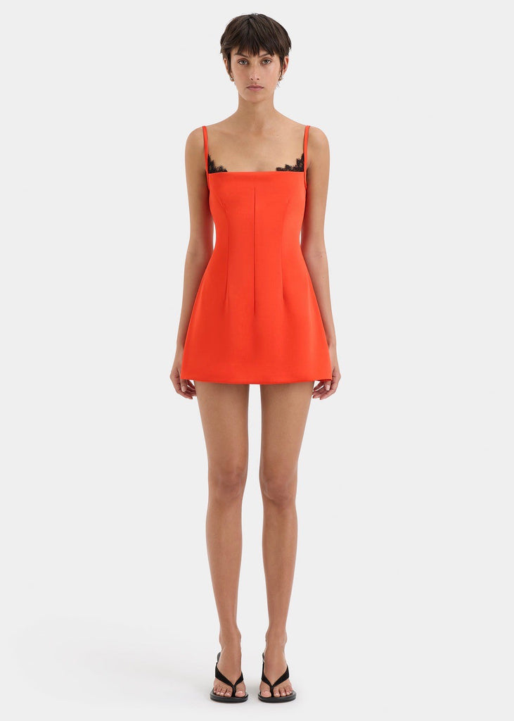 Sir.'s Poppy contoured Mini Dress in Tangerine.