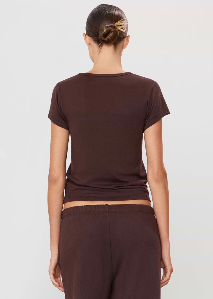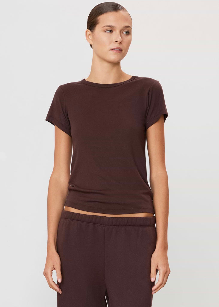 Eterne's Fitted Crewneck Short Sleeve T Shirt in Espresso.