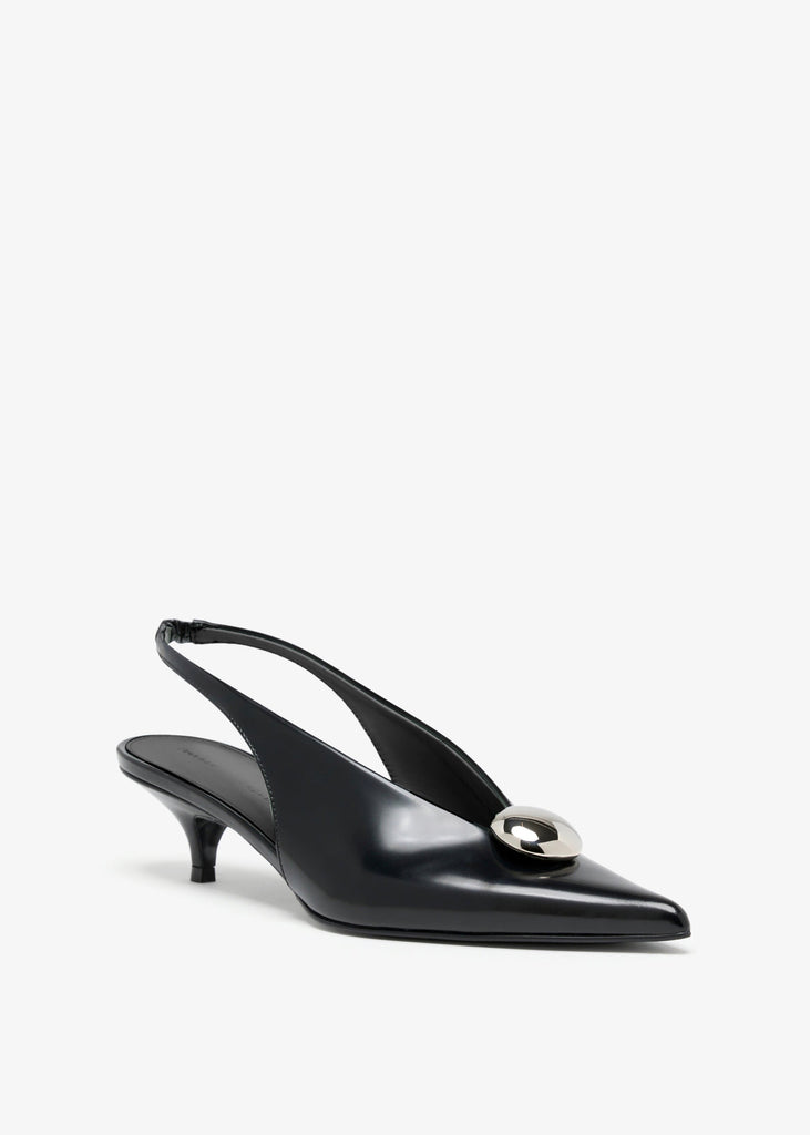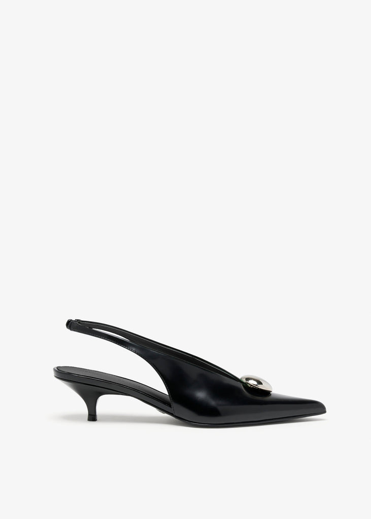 Proenza Shouler's Dome Slash Slingbacks in Polished Calf in Black.