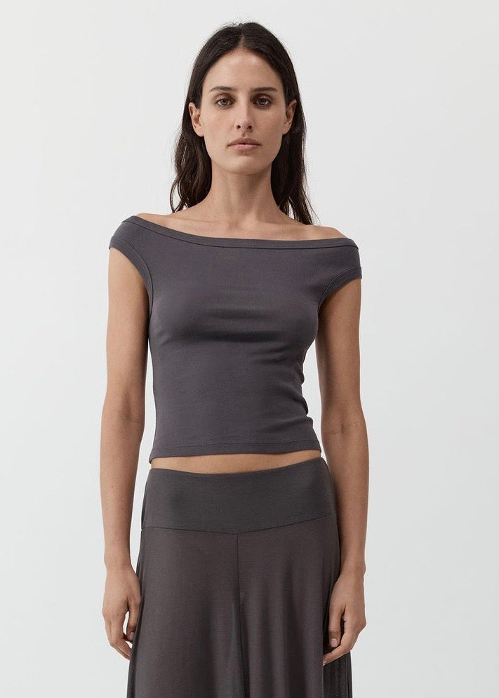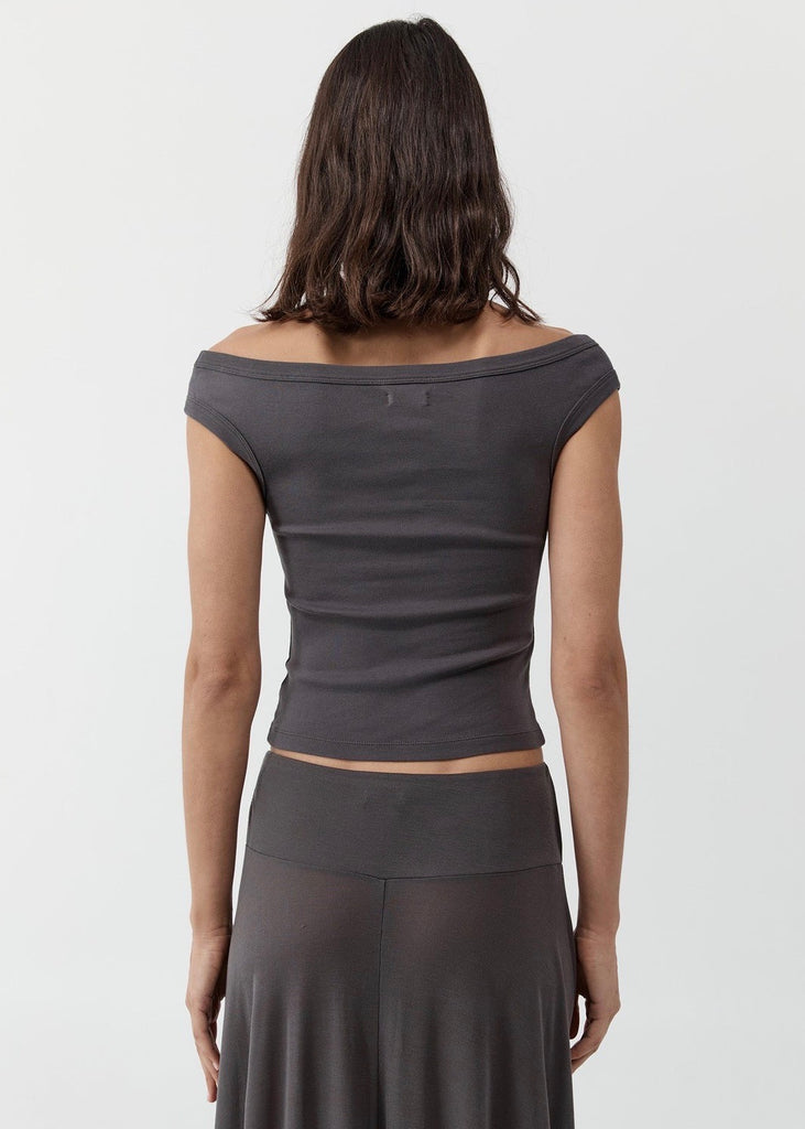 St. Agni's Organic Cotton Off Shoulder Top in Soot.
