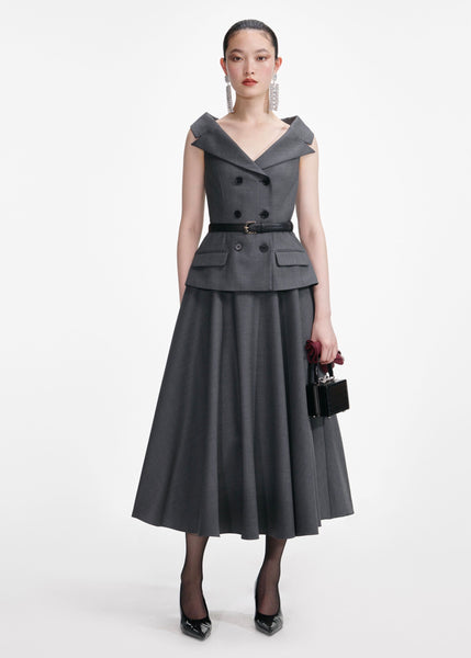 Grey Wool Tailored Midi Dress (Grey)