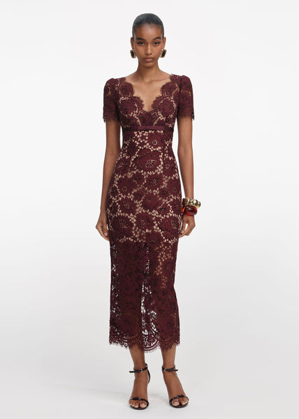 Red Fine Cord Lace Midi Dress (Red)