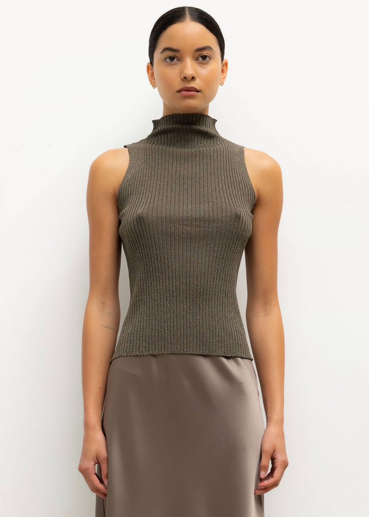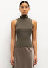Leset's Black Rib Sleeveless Turtleneck in Moss.