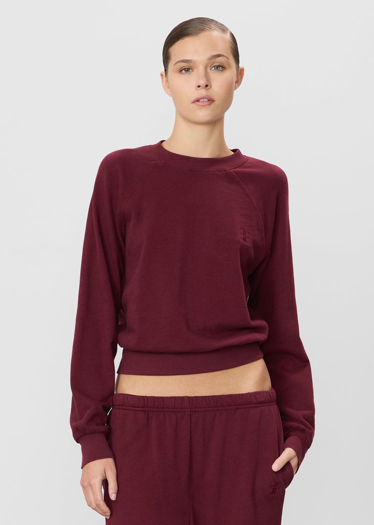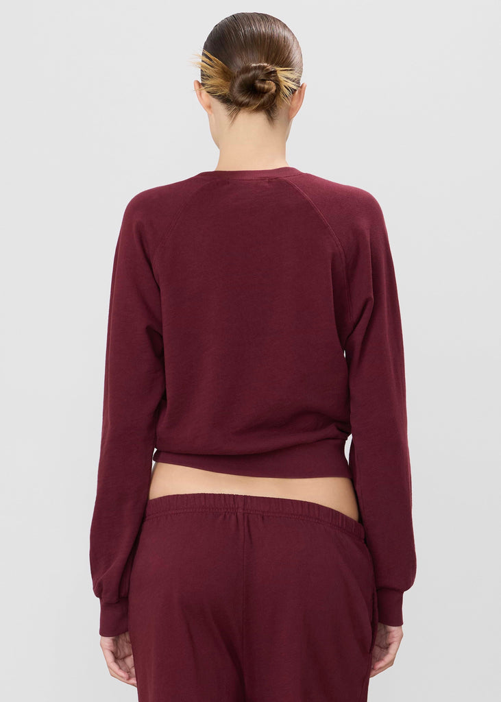 Eterne's Shrunken Raglan Sweatshirt in Oxblood.