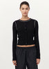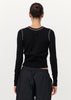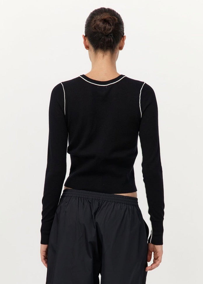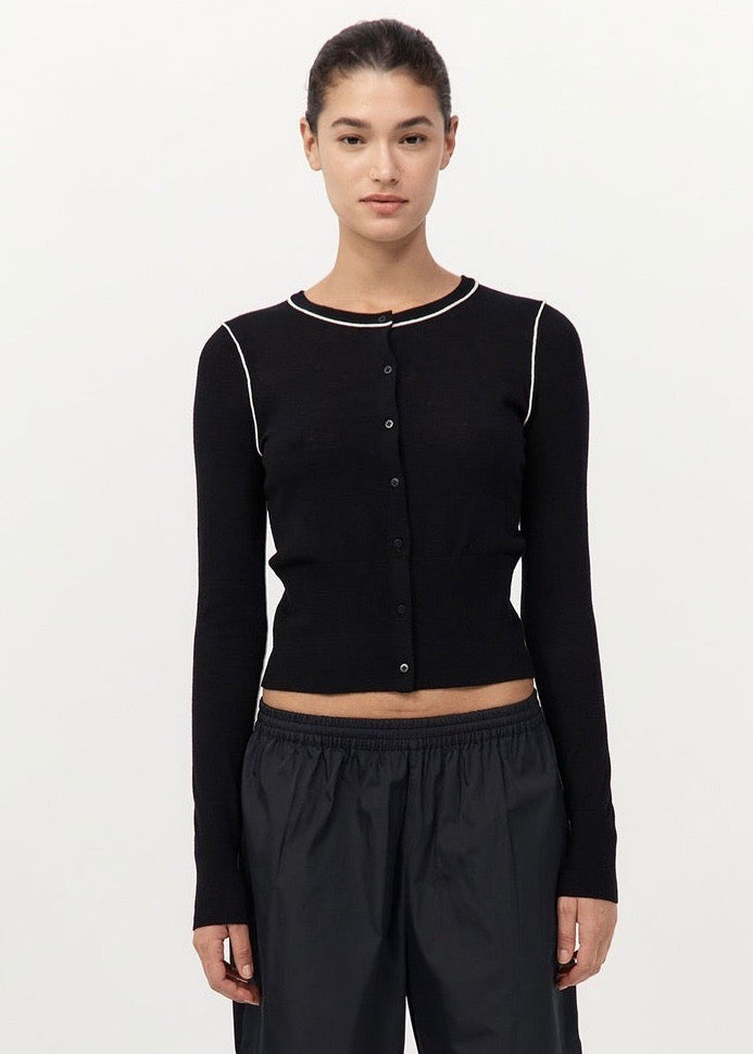 St. Agni's Wool Fine Line Cardigan in Black and Off White.