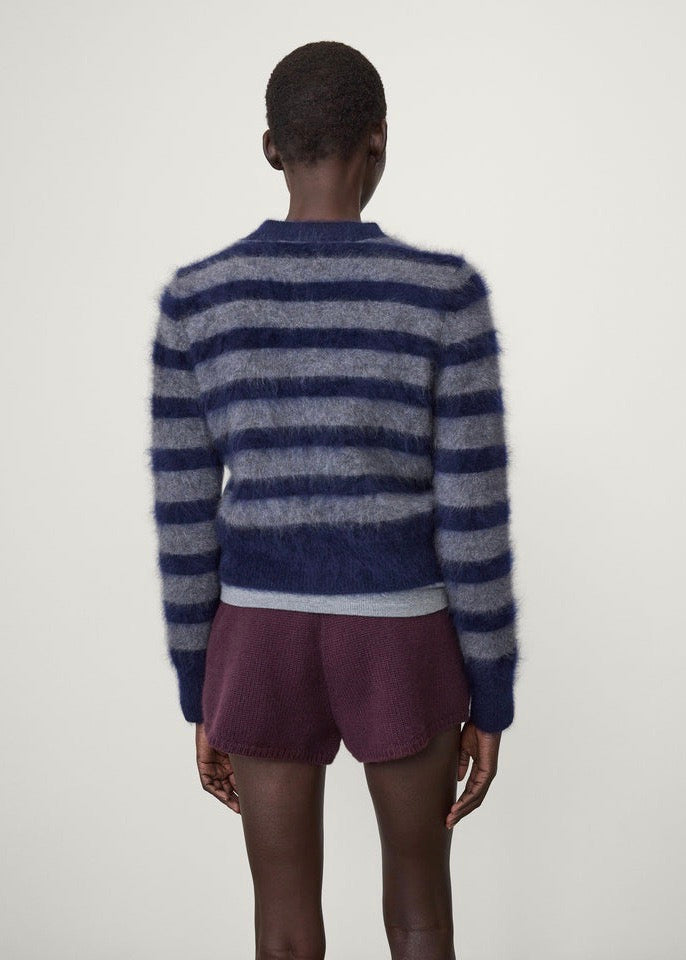 Azalea Stripe Cardigan (Graphite Brushed/Navy Brushed Stripes)