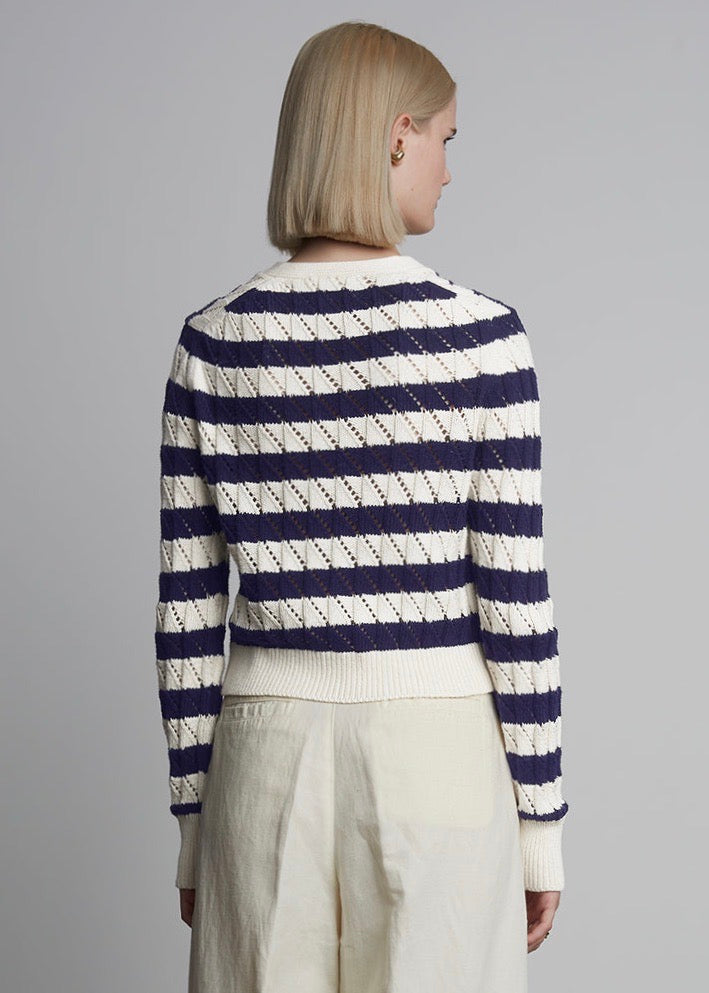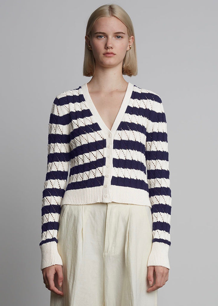 Eleven Six's Aya Stripe Cardigan in Ivory and Navy.