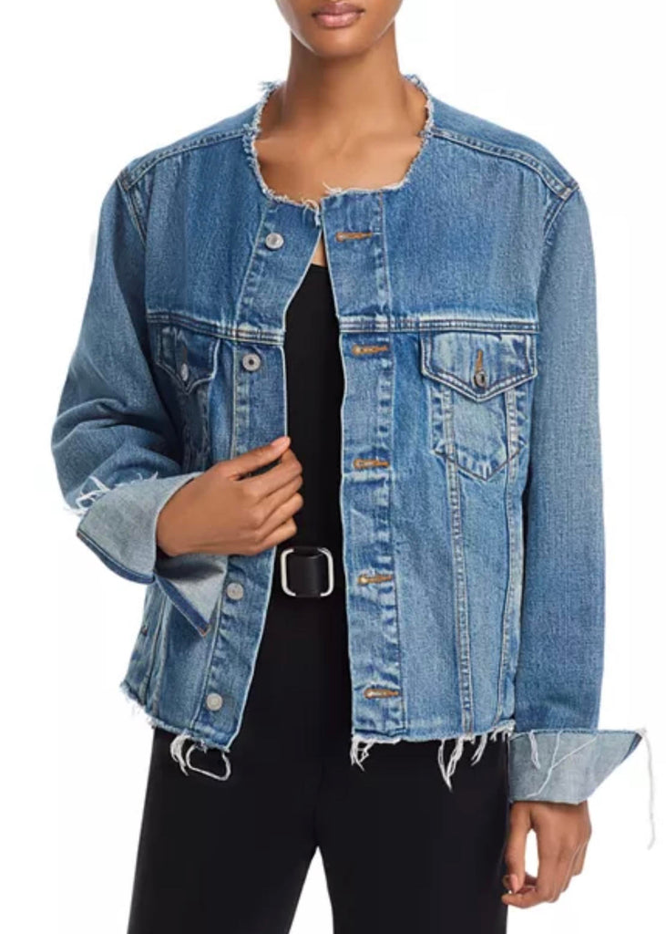 Re/Done's Cutoff Trucker Jacket in Mid Fade.
