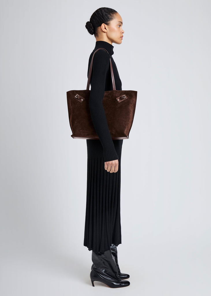 Proenza Schouler's Days Tote in Soft Suede in Chocolate.