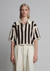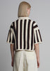 Eleven SixEleven Six's Lila Crochet Shirt in Ivory Espresson and Black is made in a hand crochet vertical stripe pattern with stitch elbow length sleeves.