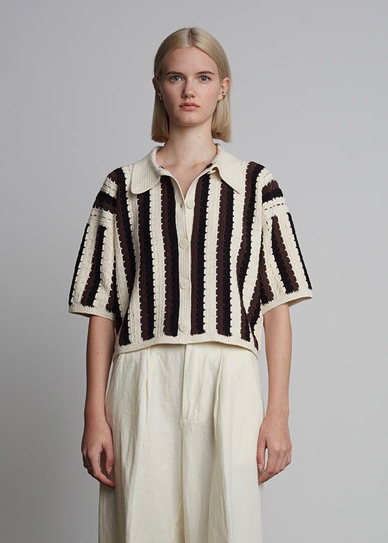 Lila Crochet Shirt (Ivory/Espresso/Black)
