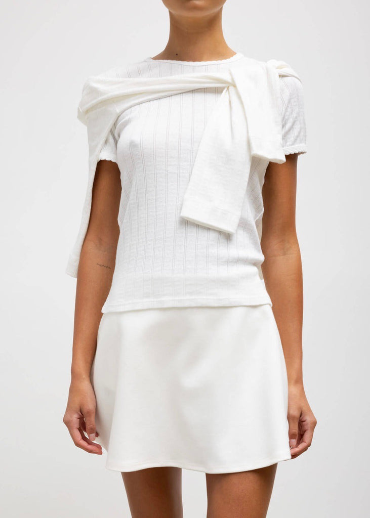 Leset's Rio Skort in Natural. DETAILS 74% Viscose, 18% Polyamide, 8% Elastane Hand wash cold, lay flat to dry Made in LA, Fabric Made in France